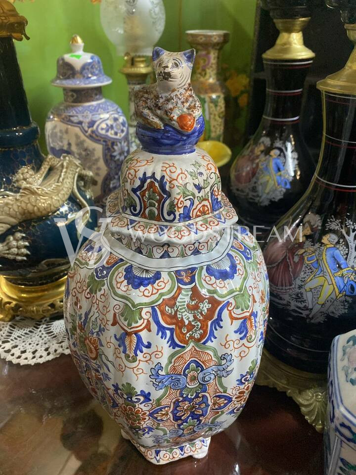 Винтажная ваза с крышкой в стиле шинуазри