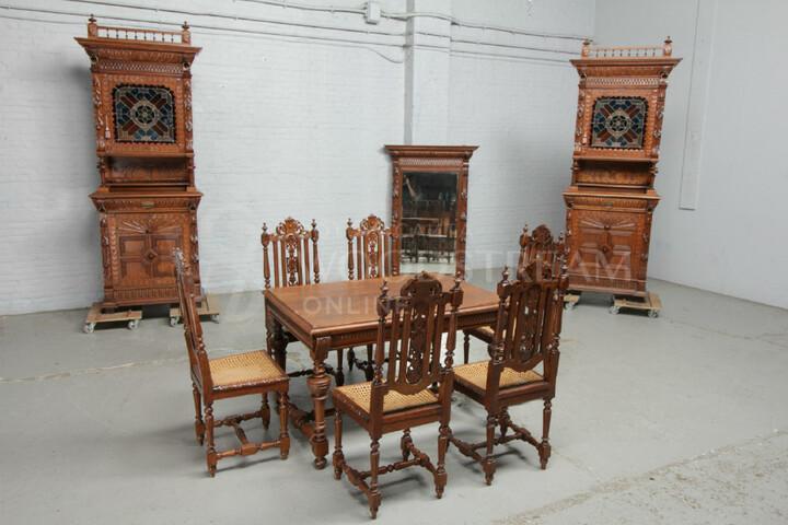 Столовая комната в стиле ренессанс: стол, 6 стульев, 2 буфета и зеркало