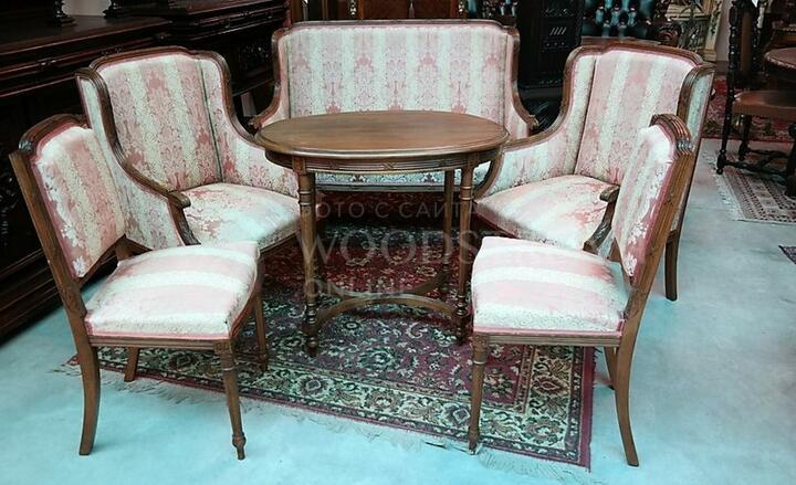Комплект мягкой мебели для гостиной комнаты в стиле Людовика XVI: диван, два кресла, два стула, столик