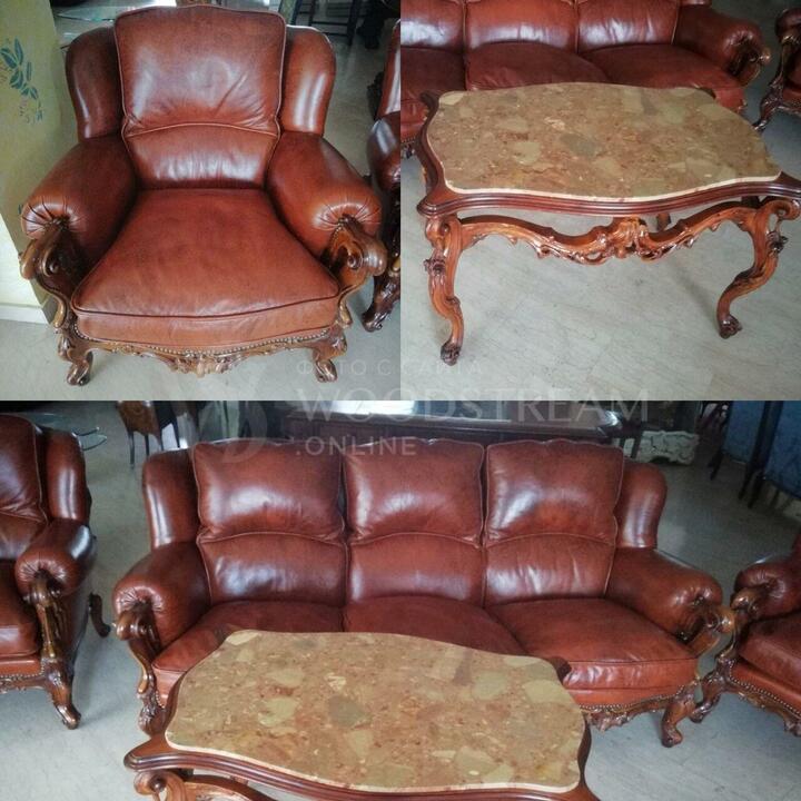 Диван, пара кресел и журнальный столик