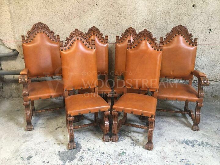 Винтажный комплект 2 кресла и 4 стула в стиле ренессанс