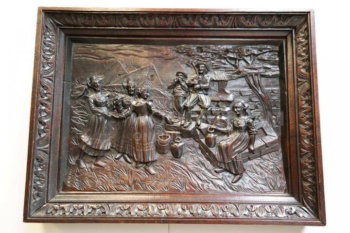 Пара старинных картин вырезанных из дерева