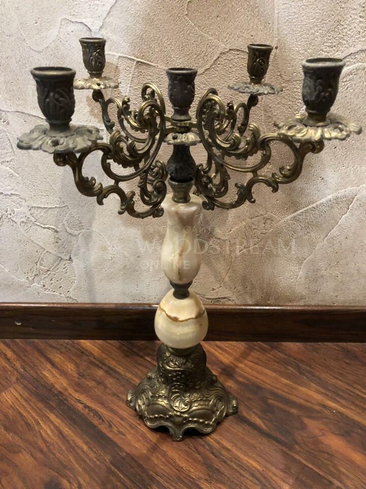 Подсвечник/канделябр винтажный из оникса и бронзы / Арт-И5013