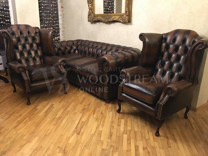 Комплект мягкой мебели Честерфилд: диван и пара кресел