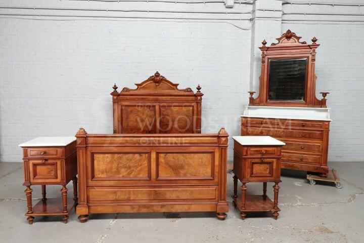 комод: 129/225/55 см Тумбочка: 25/84/25 см Кровать: изголовье: 159/168 см изножье: 154/98 см длина: 196 см