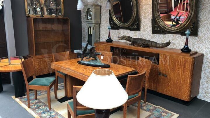 В комплект входит: буфет, дрессуар, обеденный стол, 6 стульев, журнальный столик
