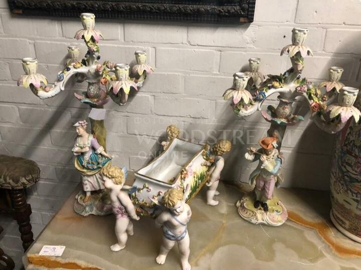 Комплект из фарфора: подсвечник 2 штуки и ваза с амурами / Арт-ФЛ7416